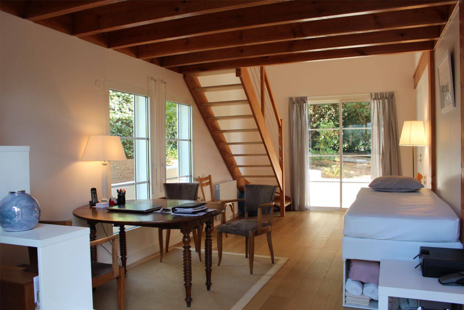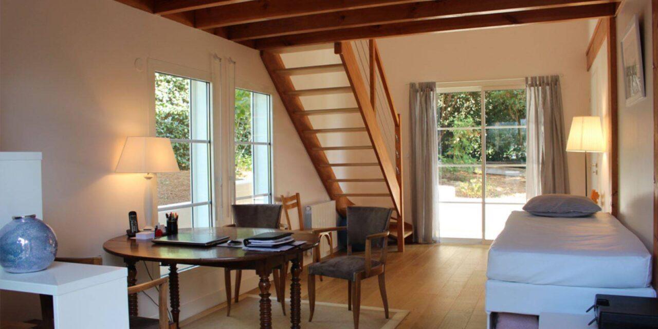 Notre mission consistait à créer en continuité de la villa un espace de 40m², à la fois indépendant et relié à la maison existante. Celle-ci s’organisait à simple rez-de-chaussée, avec une petite partie de combles aménagés accessible par une échelle de meunier.
