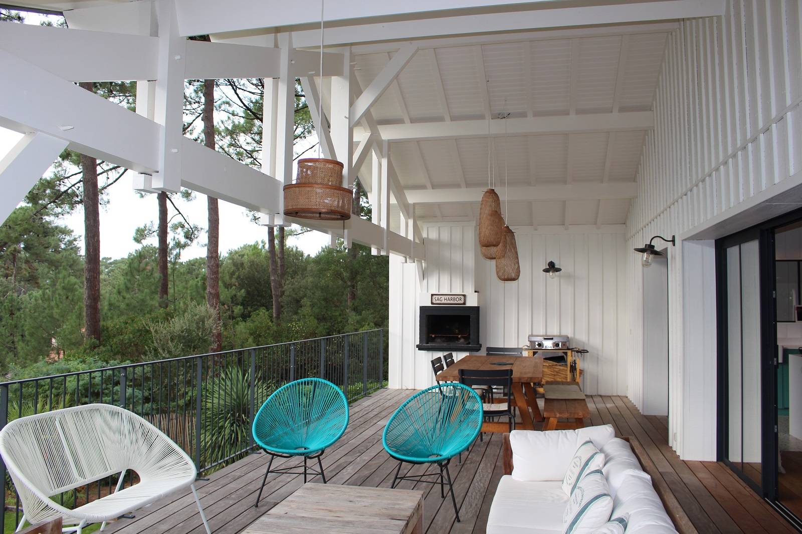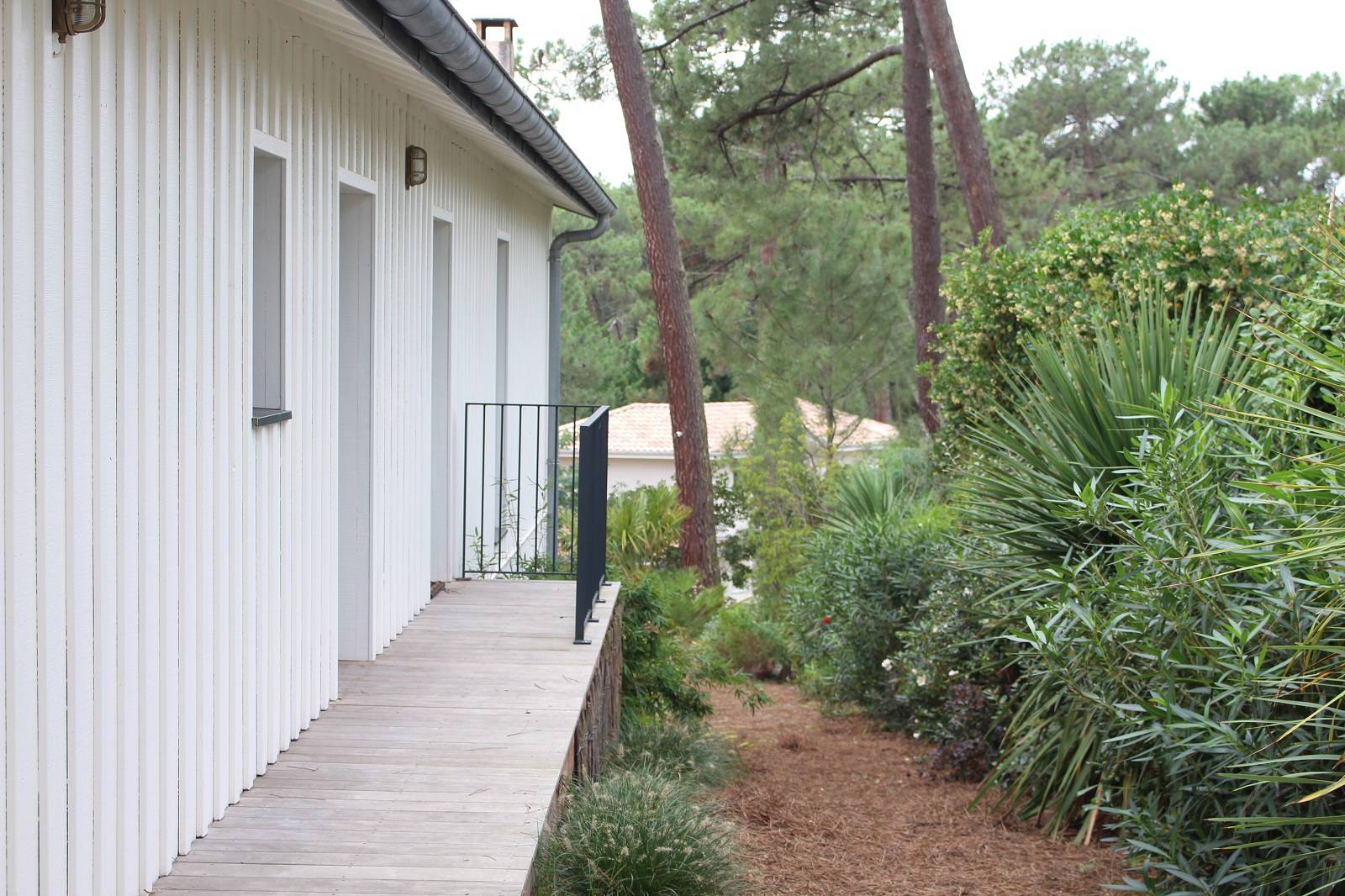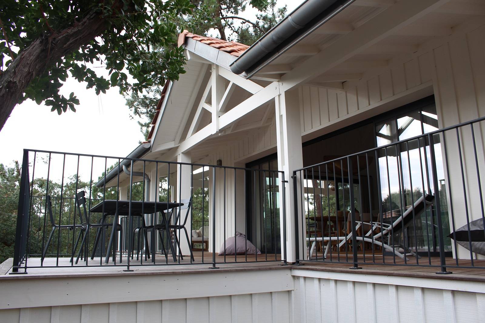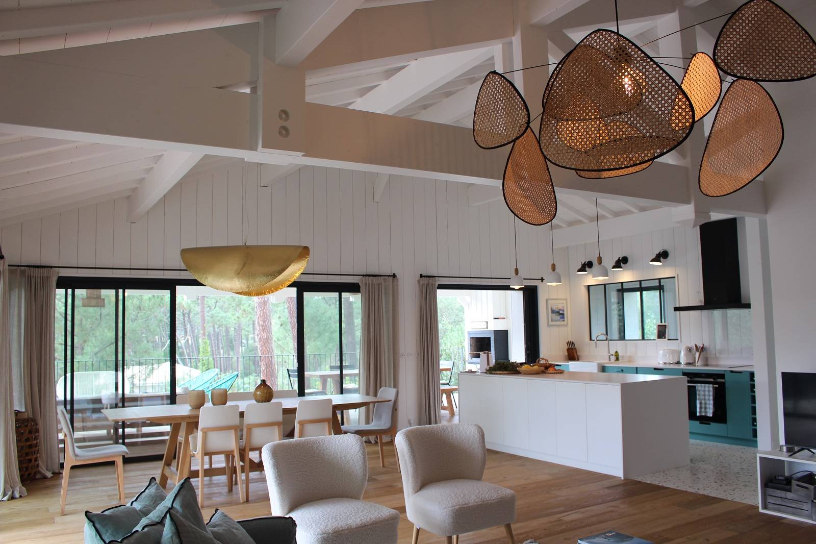Afin de libérer au maximum la vue sur les pins des Landes, de larges ouvertures ont été créées en façades, avec des menuiseries à galandage s’effaçant dans les murs.
