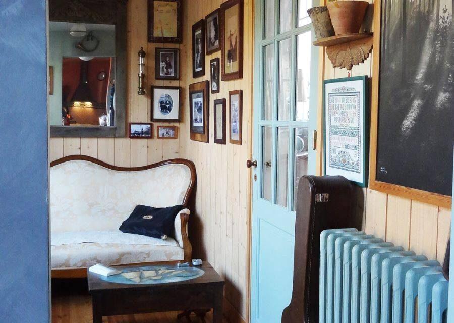En lieu et place de la cuisine existante, un petit salon a été créé avec des menuiseries bois dans l’esprit véranda.